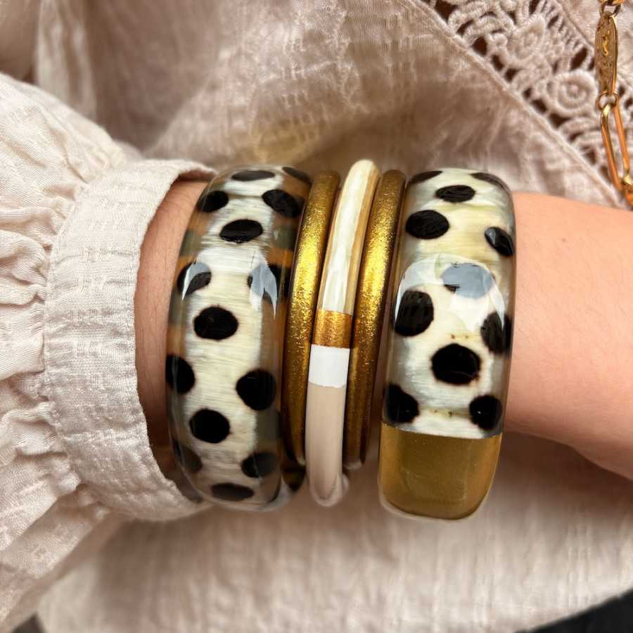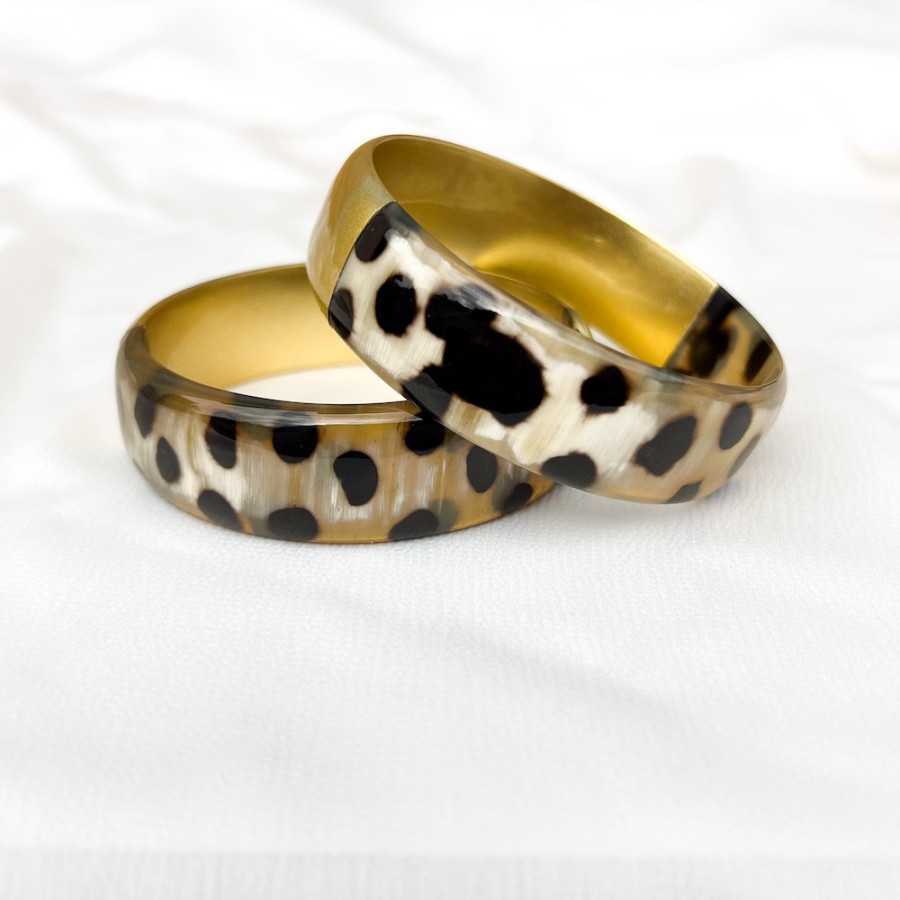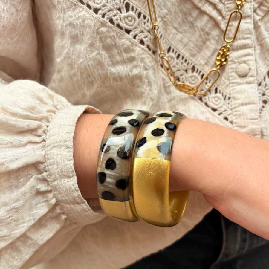 Manchette large corne de buffle léopard panthère et laqué doré 20mm - Sucre et Cannelle grossiste en bijoux de corne de buffle