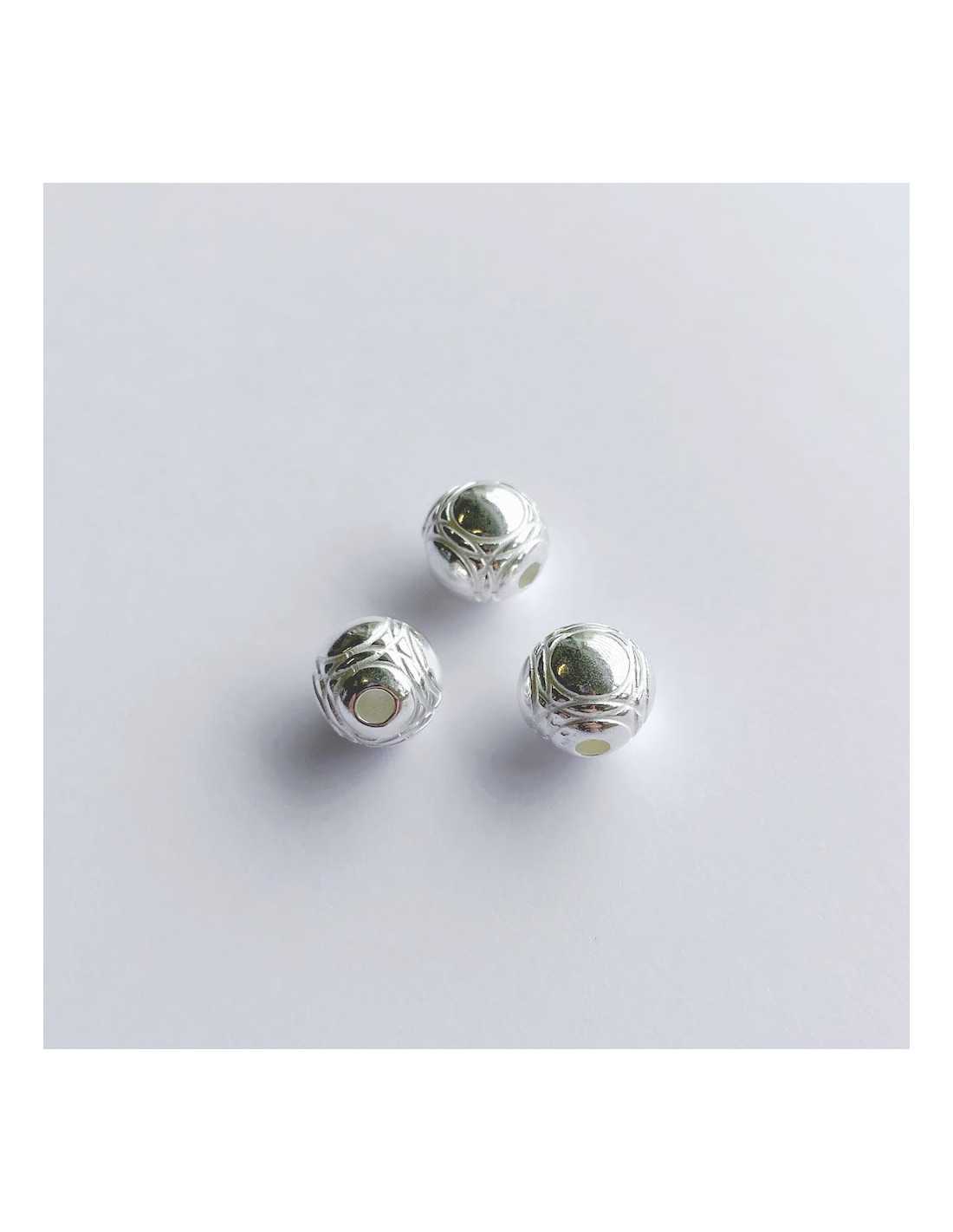 Perle sport boule de pétanque, 10 mm, plaqué argent 10 microns, par 5 pièces