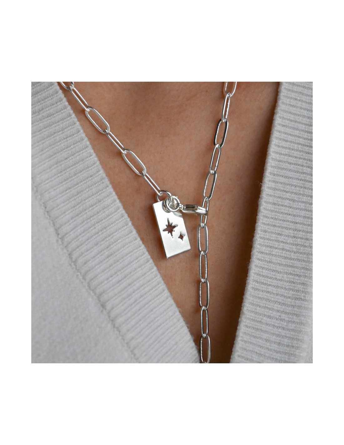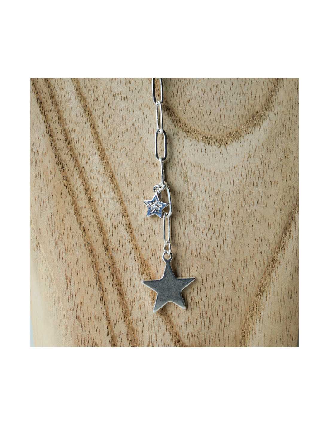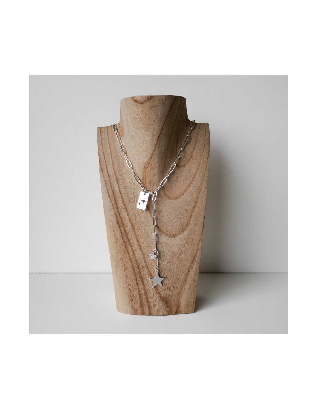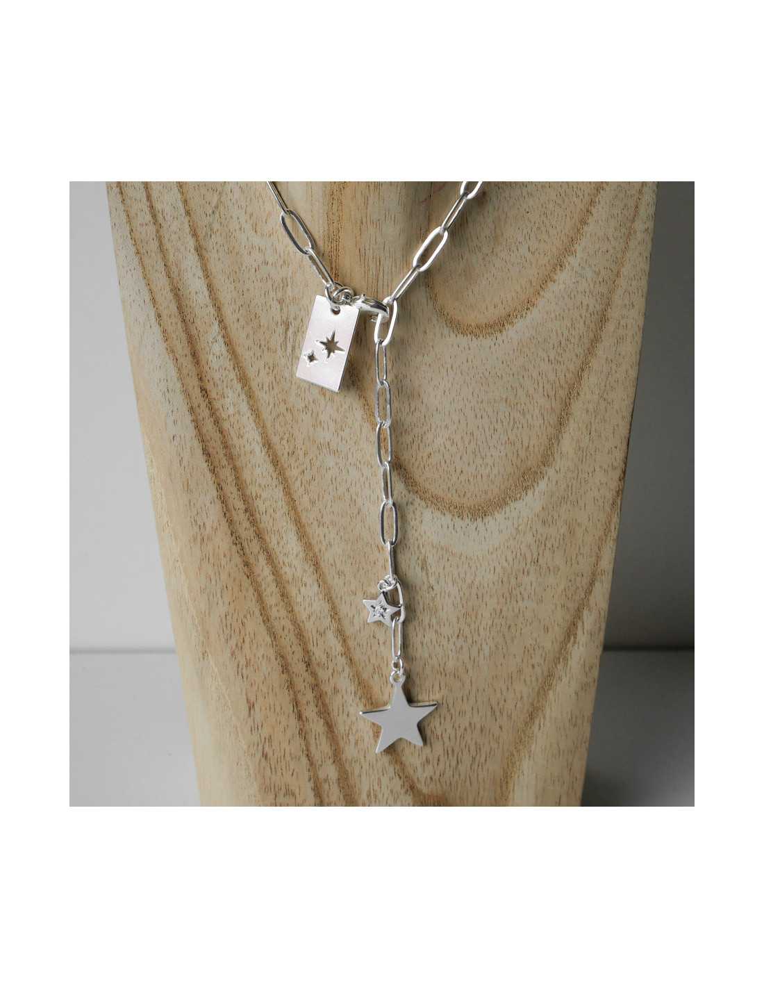 Sautoir Yona, monté sur une chaîne trombone avec pendentifs stellaires et son strass.